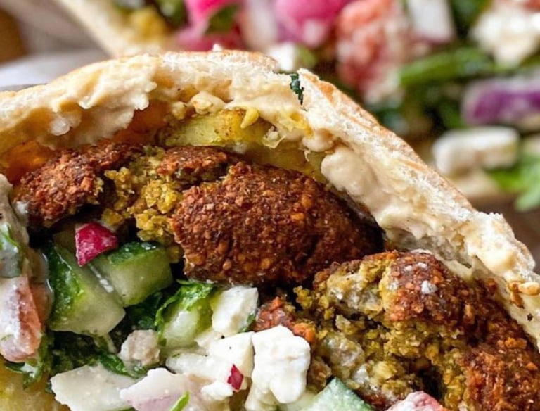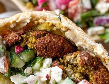 Handcrafted from ground chickpeas and herbs, falafels boast a crispy exterior and a flavorful, herb-infused interior, making each bite a delightful taste of the Mediterranean.