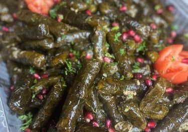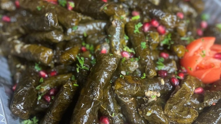 Savory stuffed grape leaves, available in both full and half catering trays.